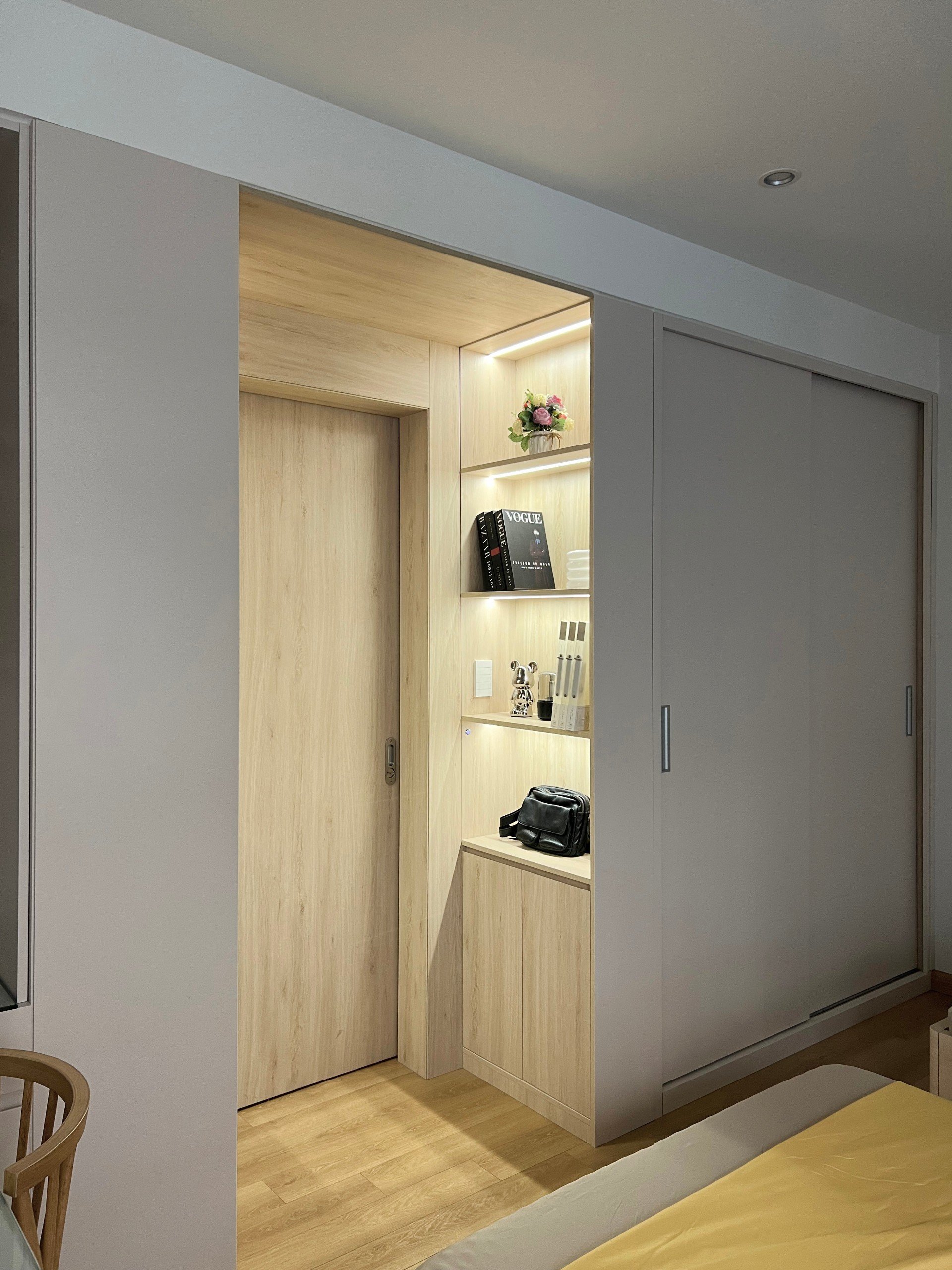 Thiết kế giúp phòng ngủ nhỏ nhưng không bị bí, dễ sử dụng hằng ngày.